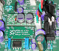 AMP-5511Mk2は前段用と後段用に2つの電源を持っています。これはこれまで発売されたSATRIアンプの中でも初めてのことです。電源を各段ごとに用意するのは経験的にも良いことがわかっていますが、これまでは良い製品を低価格で作ることを優先していたためなかなかできませんでした。今回は少し贅沢をして2電源、2トランスを採用しました。前段は入力からSATRI-ICを駆動するまでの部分です。後段は出力バッファ部です。前段用はあまり電力を使わないので小型のアールコアトランス、後段には大電流が流せる大型のアールコアトランスが使われています。電源ダイオードも2ヶ所交換です。既に変更した回路とダイオード交換、そしてバイアス量の微調整などで満足のいく音に仕上がりました。