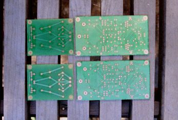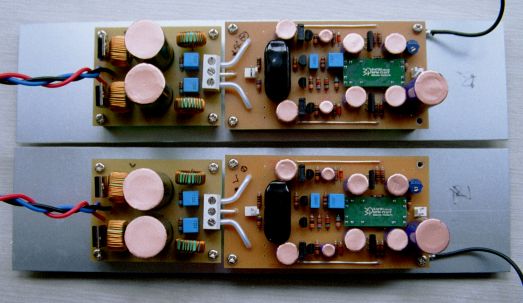 作成したPCBです.定電圧、増幅回路を一枚に纏めました.もう一枚は整流、平滑回路とノイズフィルターです.
