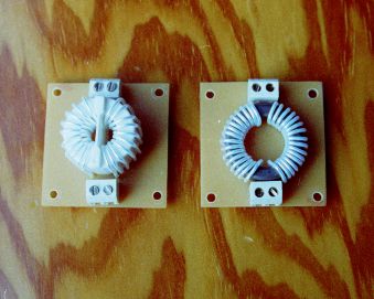 あと前回作成したLの巻き数を増やして160μH程度としました.左が400μH、右が160μHです.