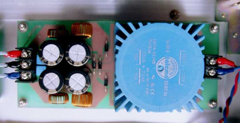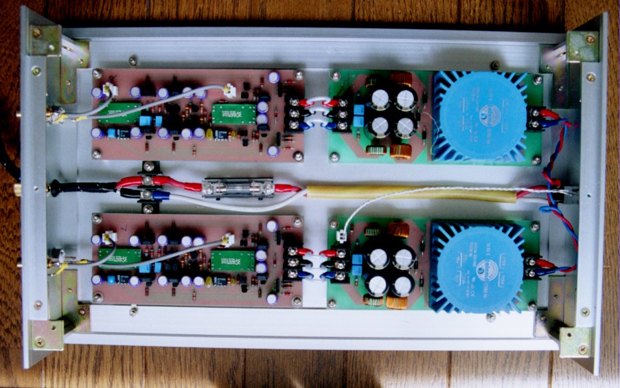 内部配線に使用した線材は交流電源系がシリコン被覆線、直流電源系がテフロン被覆単線、信号系はテフロン被覆同軸線です。石油系の被覆素材は使用しない方が良いかと思います。