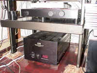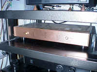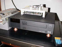 上に乗っているのはパソコン用のCD-ROMドライブをバラして作ったトランスポートです。安上がりですが、そこそこ聴けます。白いケースはコーリアン製ですが、他に銅の削り出しなどもあるそうです。リモコンも使えます。