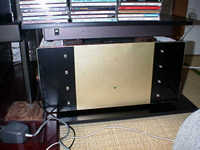 これも自作のパワーアンプです。これもSATRI回路になっています。上に乗っているのは、ラジオ技術社で宣伝している、サブスピーカー用の残響付加装置です。YAMAHAなどの製品に比べて音に違和感がないので、手軽に音の広がり感を出すことができます。左下に写っているのは、CD消磁用の消磁機です。