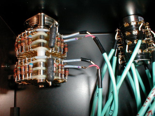 電圧出力と電流出力(SATRI-LINK)の出力切り換えスイッチは、オリジナルでは背面にあるのですが、頻繁に切り換えるため(本来は一度決めたらあまり切り換えないで使用すると思いますが)、入力切り替えスイッチをセイデンの2回路6接点のロータリースイッチに換え、前面で出力切り換えも同時に可能にしました。
