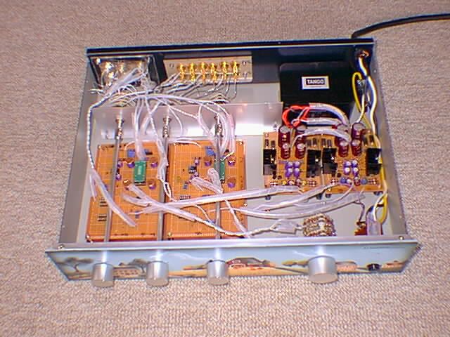 右は私にとってはじめてのSATRIシステム製作となったSATRI-PREです。回路はMJ誌1998年8月号にあった安井先生の回路をほぼ踏襲していますが、DCアンプ構成としたかったためにSyCAPを付けず、DCサーボにしてあります。また入力段はK389にしました。電源は窪田式定電圧電源を左右独立で設けていますが、電源トランスが共通なので効果の程はわかりません。