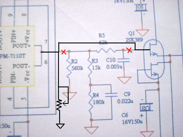 ・RIAA用の素子をジャンプするため基板上の抵抗を2本取り外します。