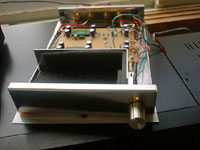 ケース前面の電源スイッチ用の穴をリーマ等で大きくし、ボリュームを取り付ける。私の場合、AMP-5512KについてきたALPS製の小型ボリュームを取り付けました。あまり大きなものは取り付け不可です。本当はセイデンのアッテネータを付けたいところですがサイズ的にこのケースを使う以上は無理です。