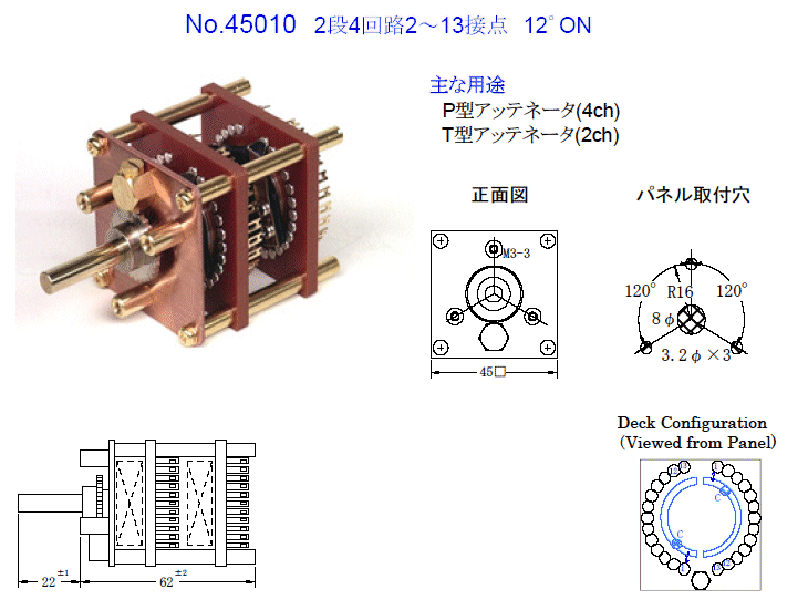 オーディオ用ロータリースイッチ : Lパッド型,T型用スイッチ 32NEG 45SG 56SG 62/74SG SP切換用SW